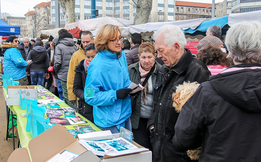 Afin de s’en occuper, l’antenne d’Un monde sans drogue (DFW) de Clermont-Ferrand ne laisse pas passer une semaine sans se rendre dans les rues de leur ville et dans les quartiers avoisinants, afin de distribuer les livrets de La vérité sur la drogue dans les magasins, qui à leur tour les remettent à leurs clients. Ils ont également installé des stands sur les marchés et dans les rues animées pour que les visiteurs puissent prendre la documentation. « Comme un enfant à Noël qui ouvre un cadeau qu’il espérait depuis longtemps, » c’est la façon dont un bénévole d’Un monde sans drogue décrit l’expression sur le visage d’un enseignant quand il a découvert le Kit pédagogique d’un monde sans drogues à un stand.