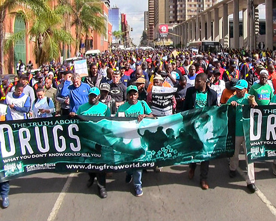 On a pu démontrer que la majorité des violences faites aux femmes et aux enfants ont pour origine la drogue. C’est pourquoi l’association pour un monde sans drogue a rejoint la Marche des 100 hommes à Pretoria, en Afrique du Sud.